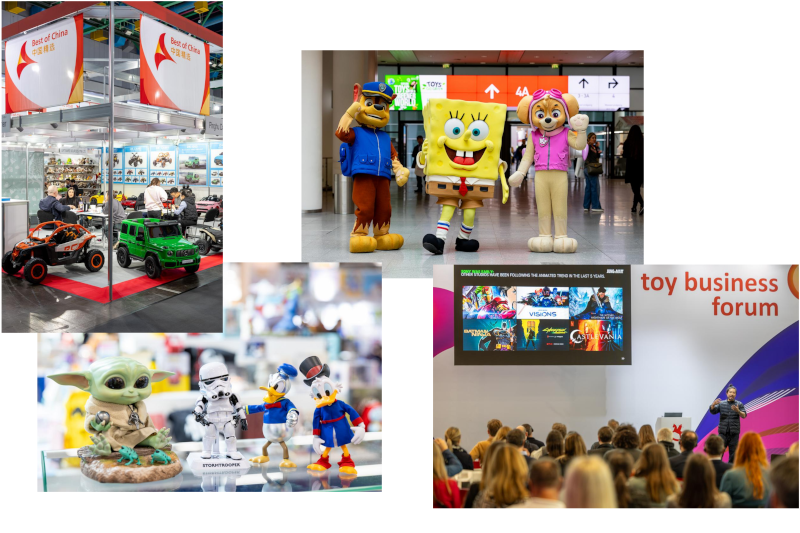 La feria reúne desde productos de bajo costo y gran comercialización hasta los productos de alta calidad de renombradas marcas. No solo juguetes, en el sentido tradicional de la palabra, se exponen en este mercado mundial, si no también una amplia gama de productos afines, desde productos para el tiempo libre, carnaval y fiestas hasta artículos para bebé, escolares y de licencias.